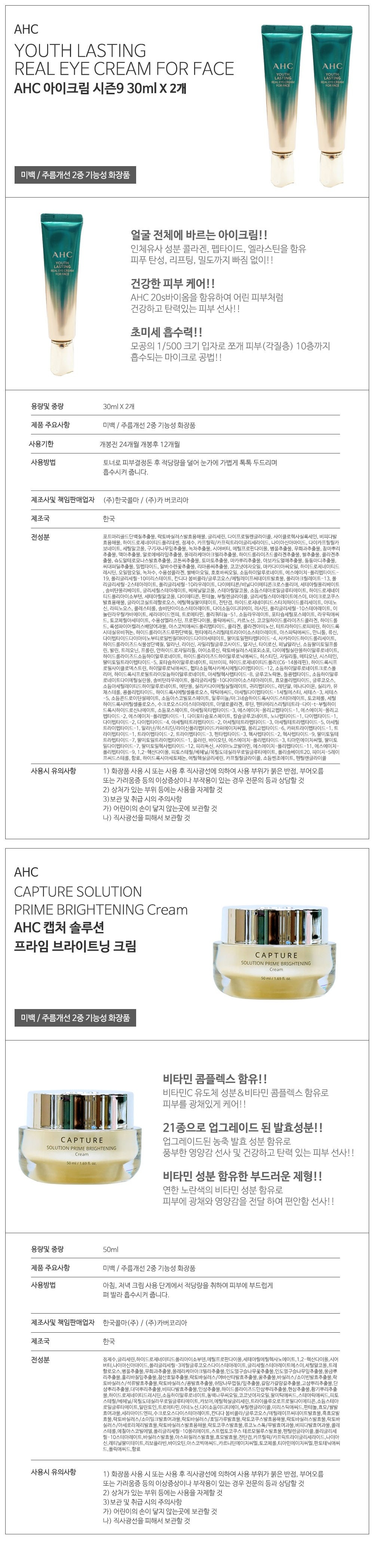 AHC Eye Cream Season 9 30ml x 2p + Capture Solution Prime Brightening Cream 50ml